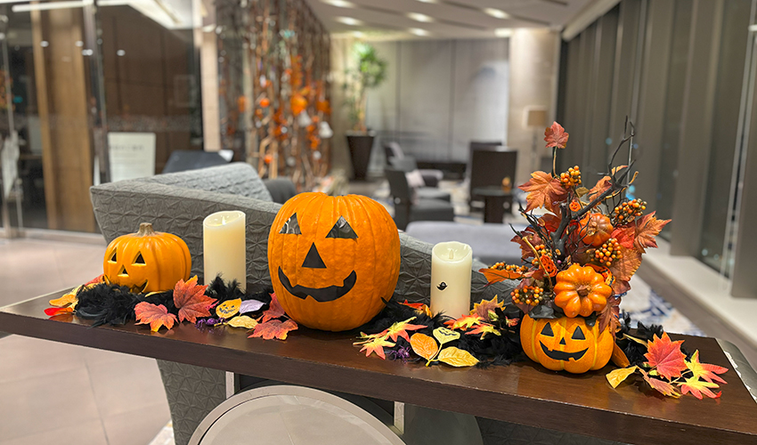 ジャック・オー・ランタンや可愛いお化けたちがロビーの色々なところで皆様をお待ちしております。