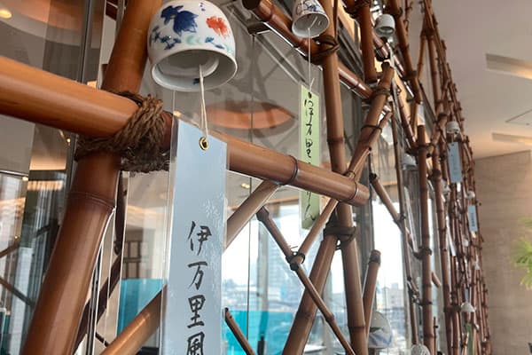 「伊万里焼」の風鈴を展示し、皆様をお迎えいたします。